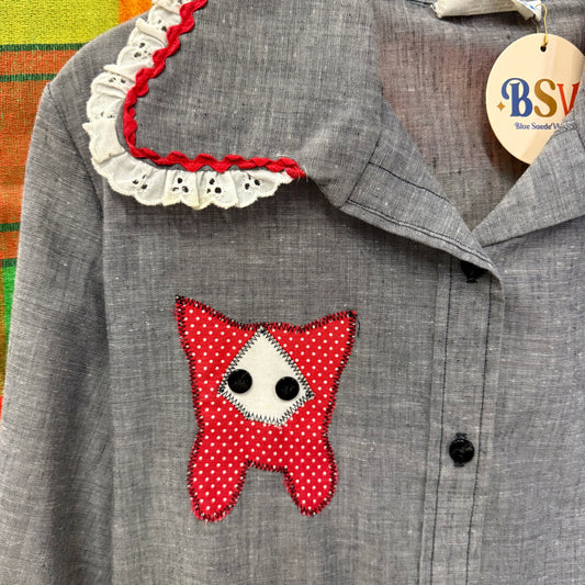 1970's Cat Appliqué Eyelet Trim Blouse | Yum Yum's