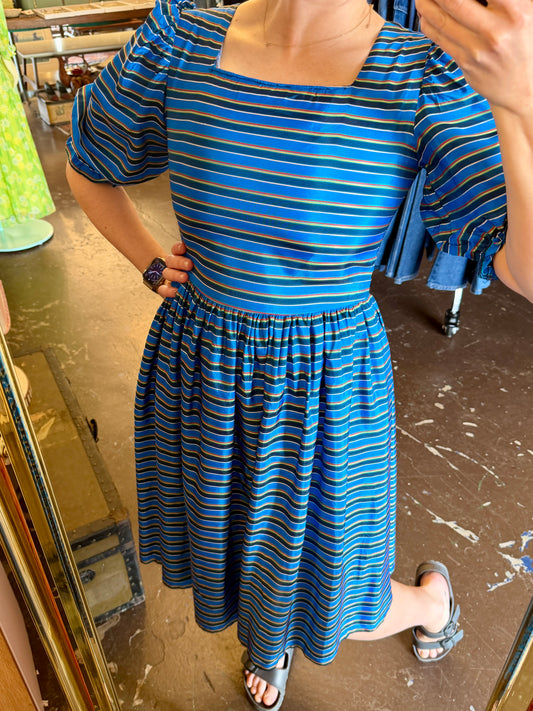 1980's Blue Striped Acetate Dress | Neiman Marcus