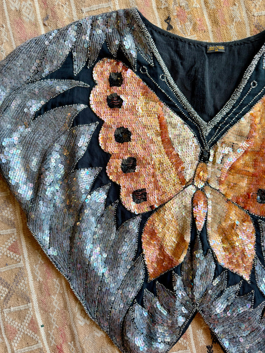 Vintage Sequin Silk Butterfly Blouse AS IS