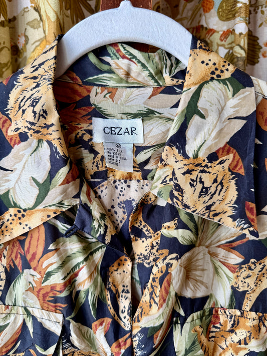 1990's Matte Silk Jaguar Jungle Shirt | Cezar