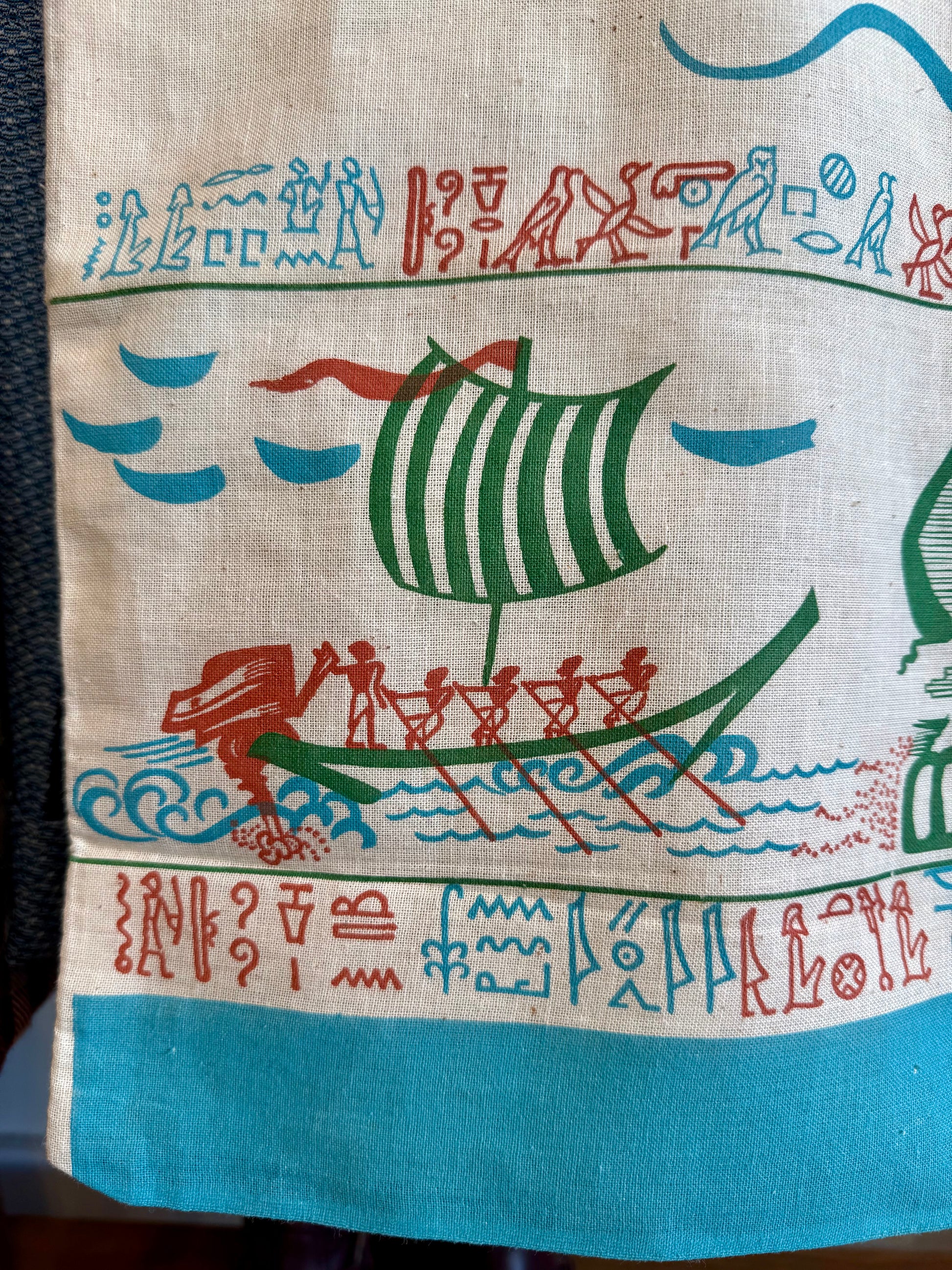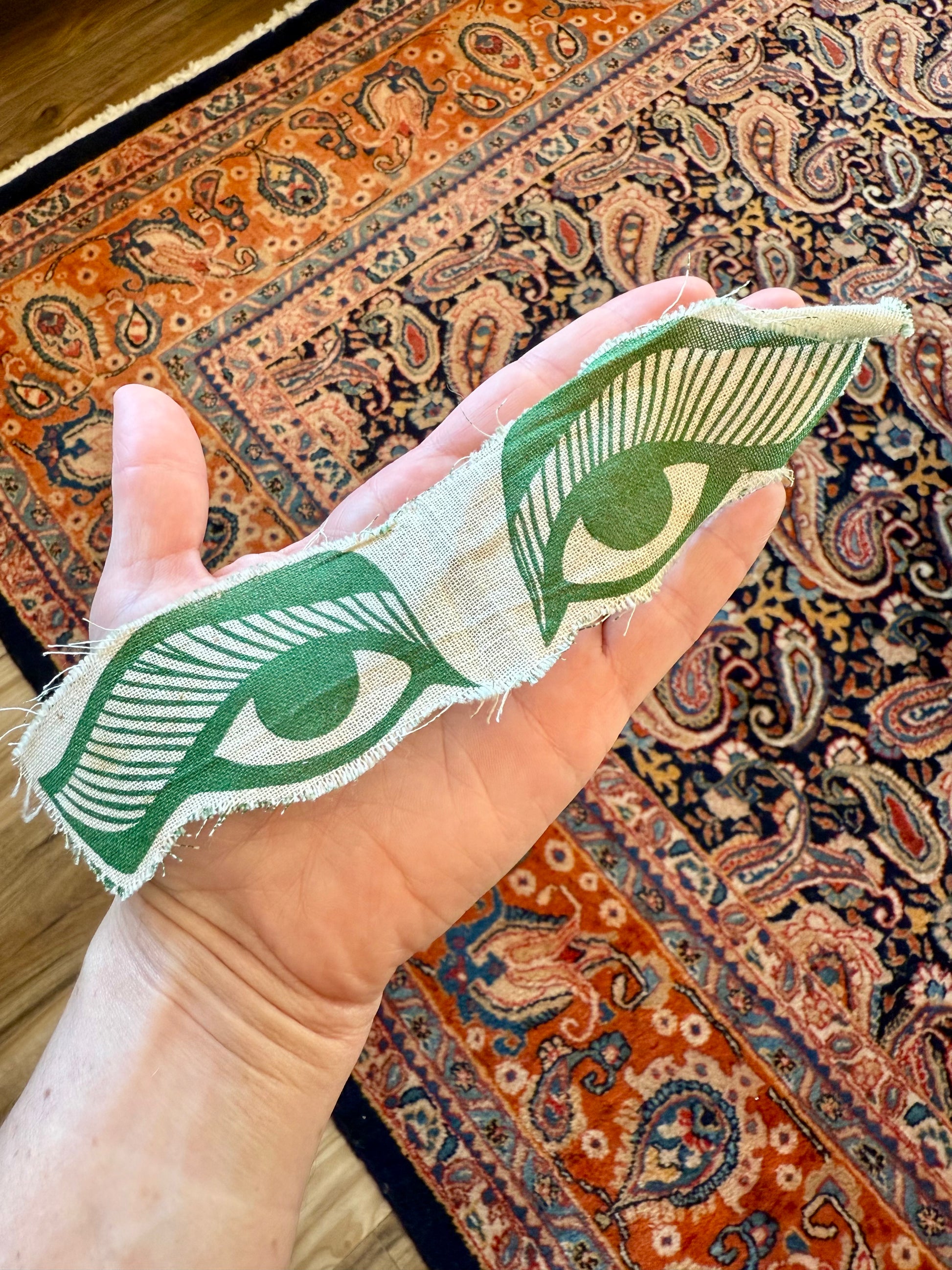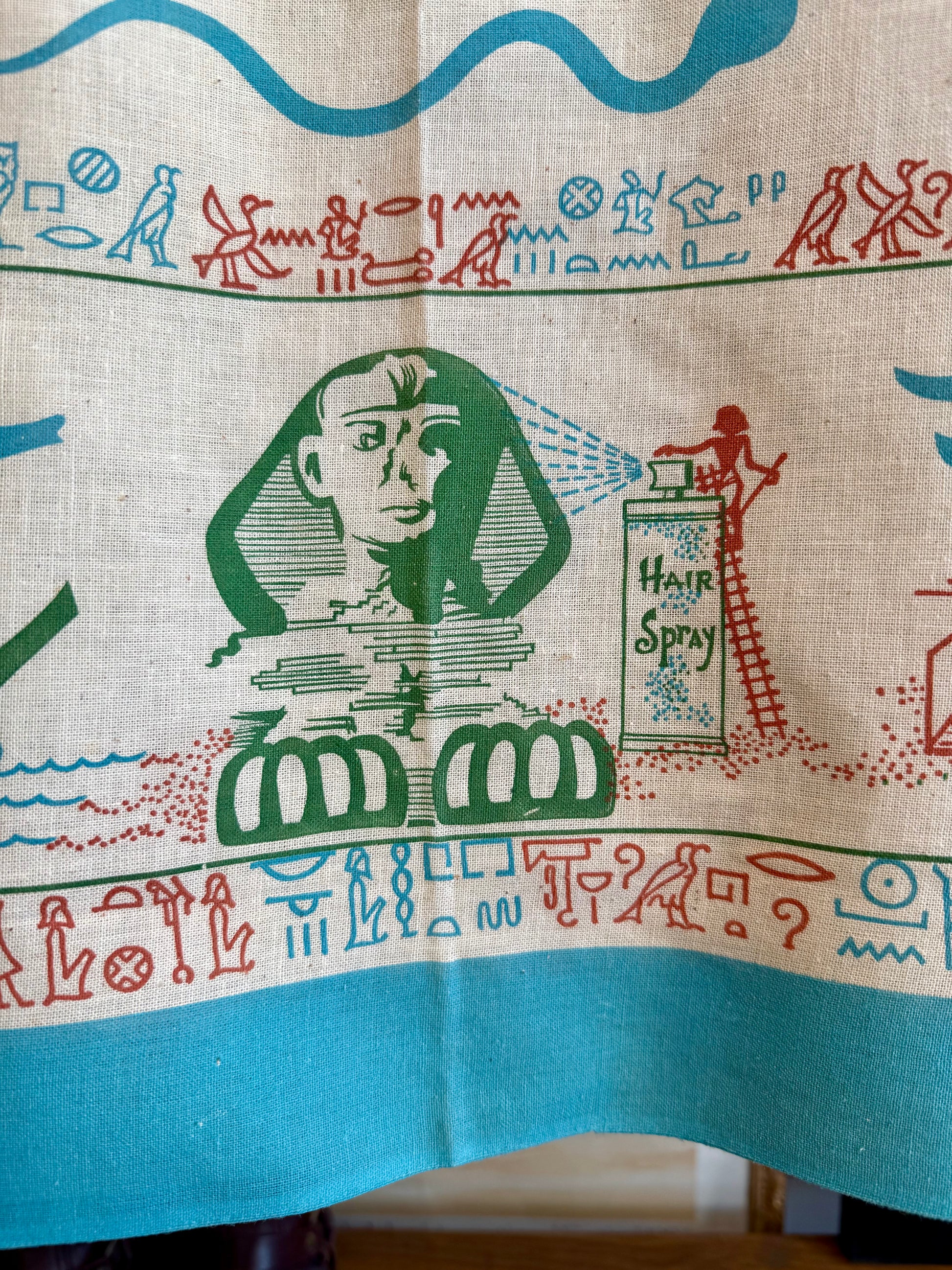 Ok, we’ve been holding on to this one for far too long, but it’s time for Cleopatra to make her debut! Vintage 1950’s/early 1960’s “Cleopatra Playsuit” feed sack dress with cheeky rhyme and graphics, definitely a collector’s piece. This one even comes with the “eyes,” which you don’t always see! The eyes are basically a piece of cut fabric (see photo), but you could still do something fun with them.