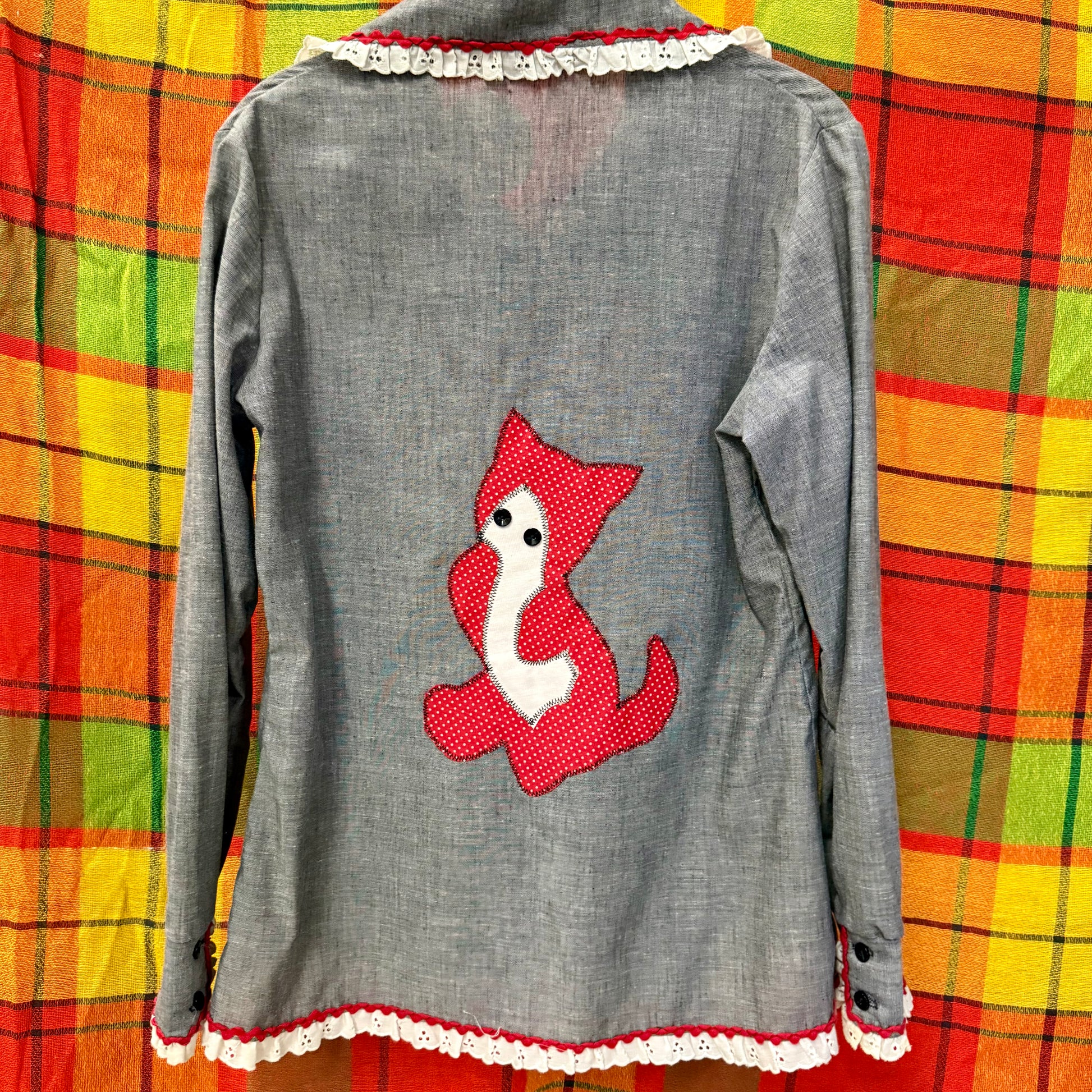 1970's Cat Appliqué Eyelet Trim Blouse | Yum Yum's