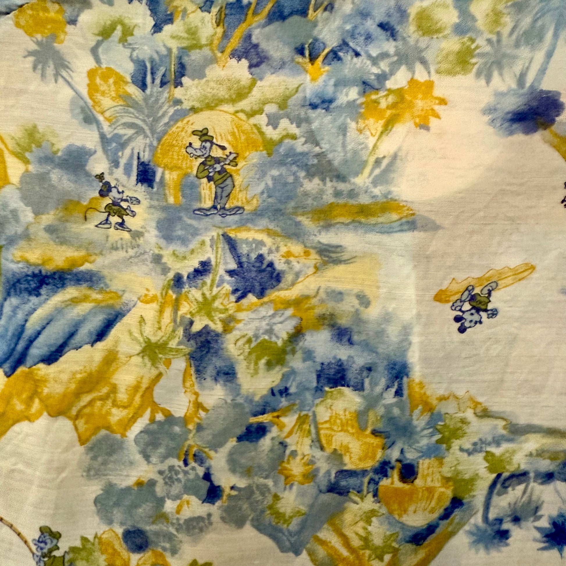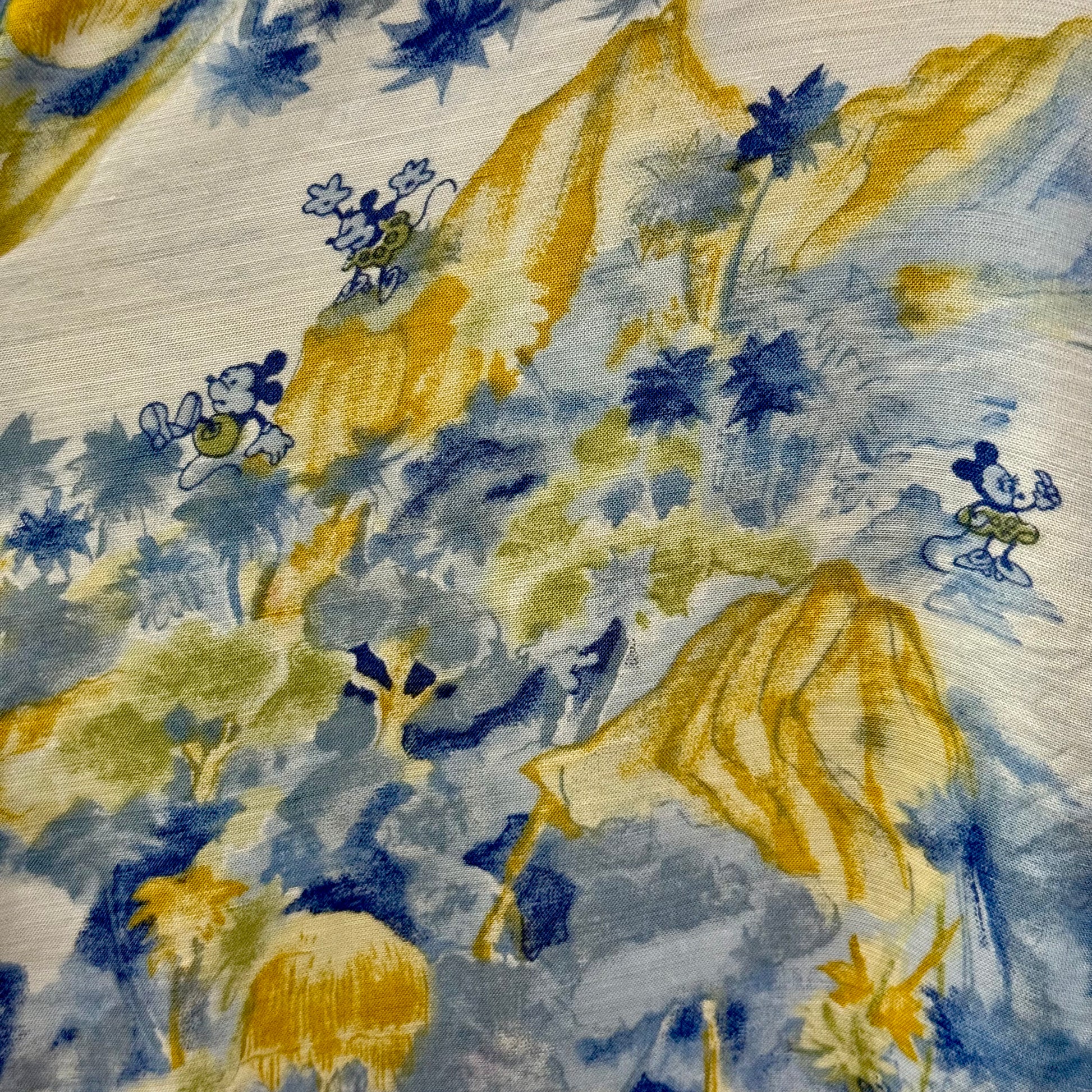 Soft rayon, slightly sheer, hidden Disney characters (Mickey, Minnie, Donald Duck, Goofy and Pluto)