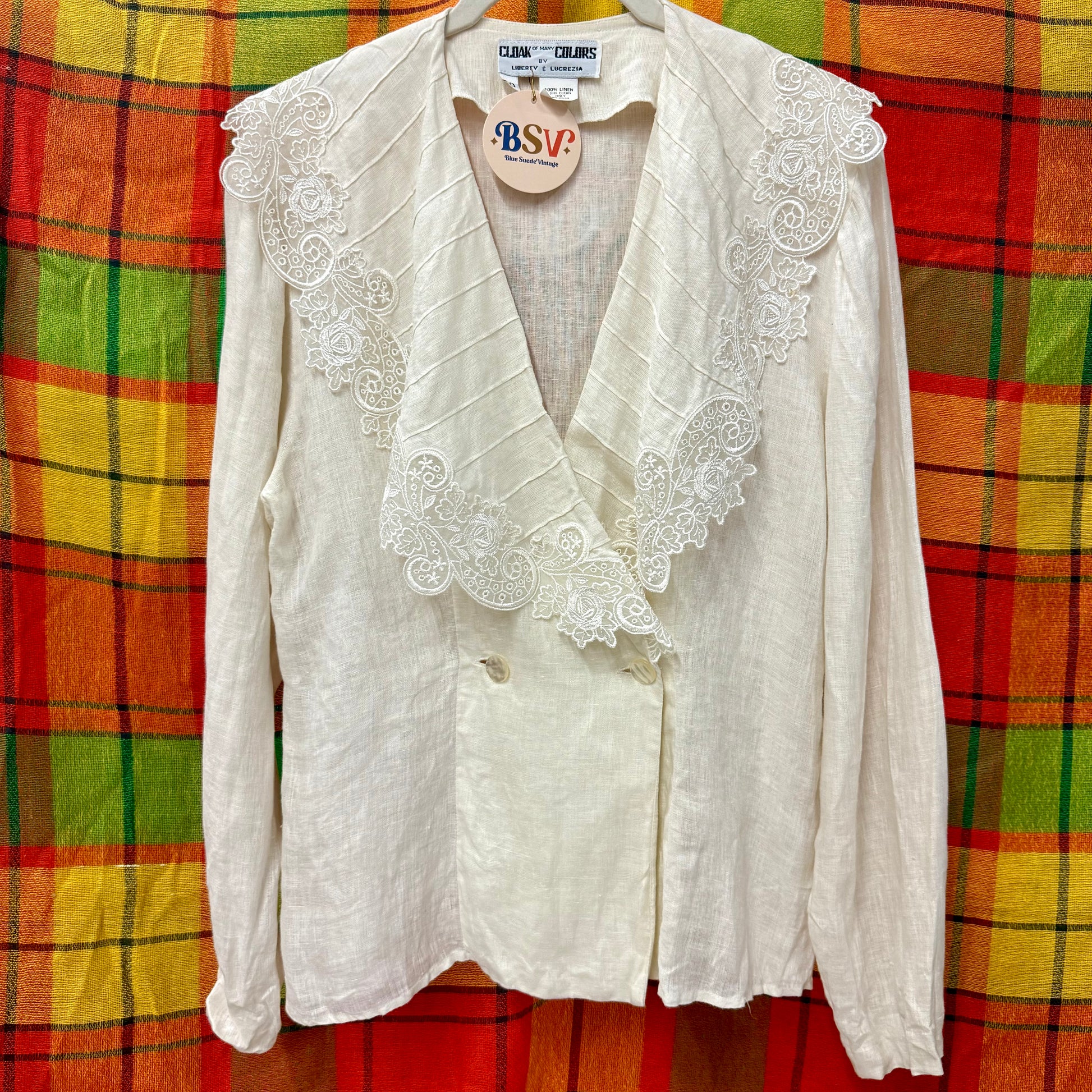 1990's Cream Linen Broad Collar Blouse | Cloak of Many Colors