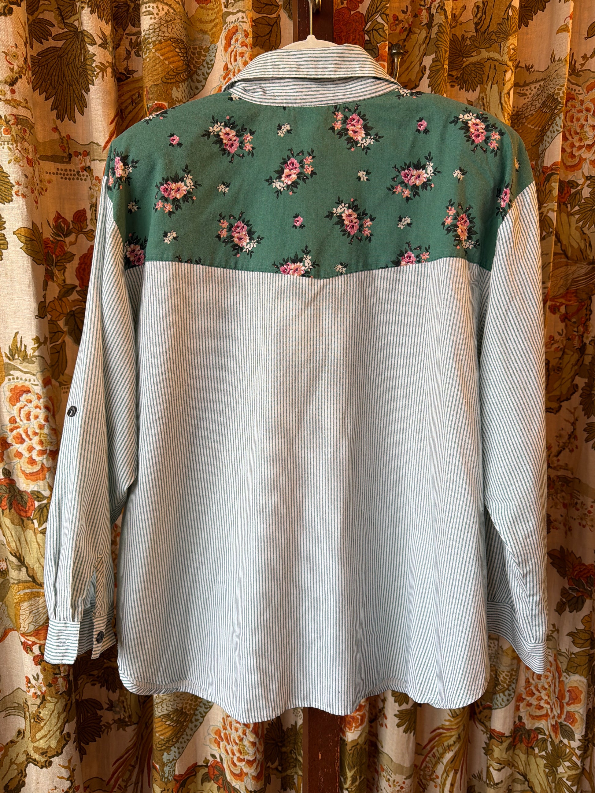 1990's Floral & Stripe Blouse LS | Tap & Co