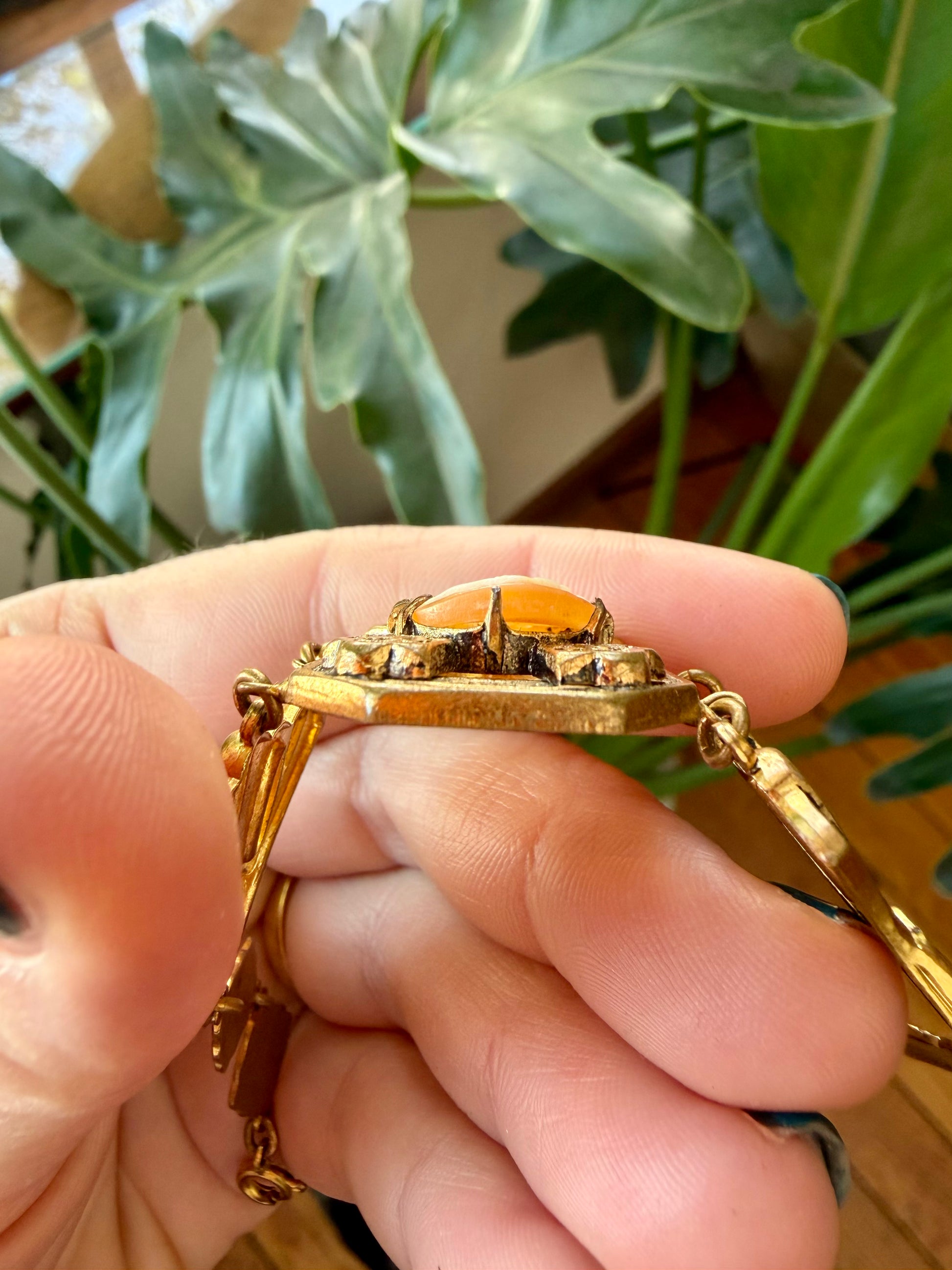 Authentic carved shell cameo bracelet set amongst gorgeous gold filled filigree frame and links. Unmarked; lobster clasp (possibly a replacement?). Using an acid scratch test, this is reading at least 10kt and does not attach to a magnet.