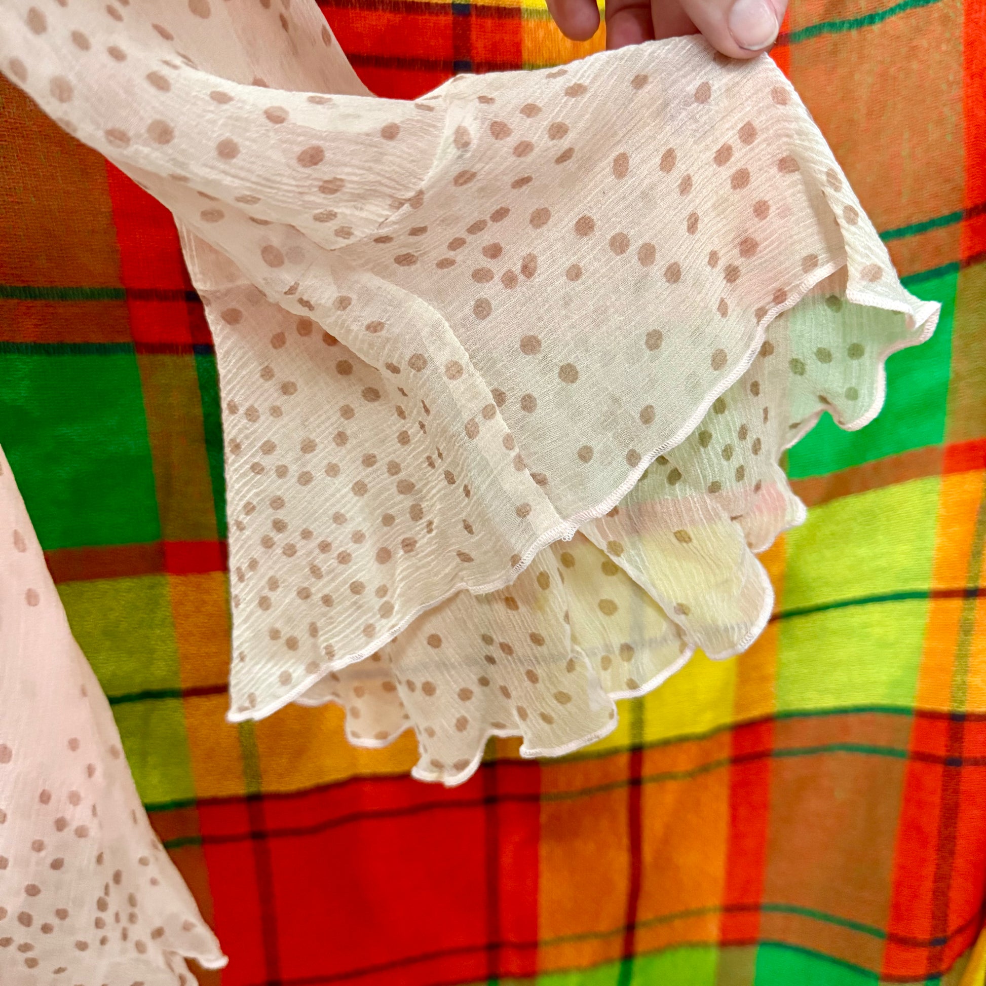 100% silk chiffon outer, 100% polyester lining